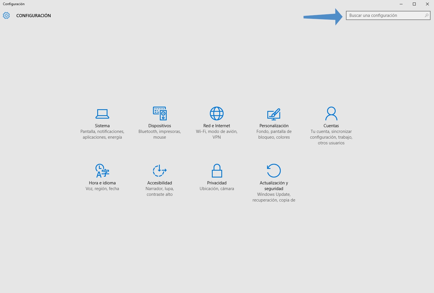 Ahora, en esta pestaña da clic en " Buscar una configuración" e ingresa la palabra "Impresora".